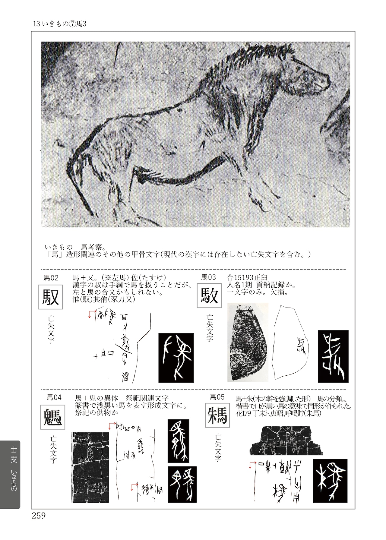 • 動物編(番外編): 十二支が特定の動物と結びつく以前の、純粋な「いきもの」としての甲骨文字138文字を収録。虎、竜、馬、羊など、古代人が捉えた生命の躍動が刻まれています。