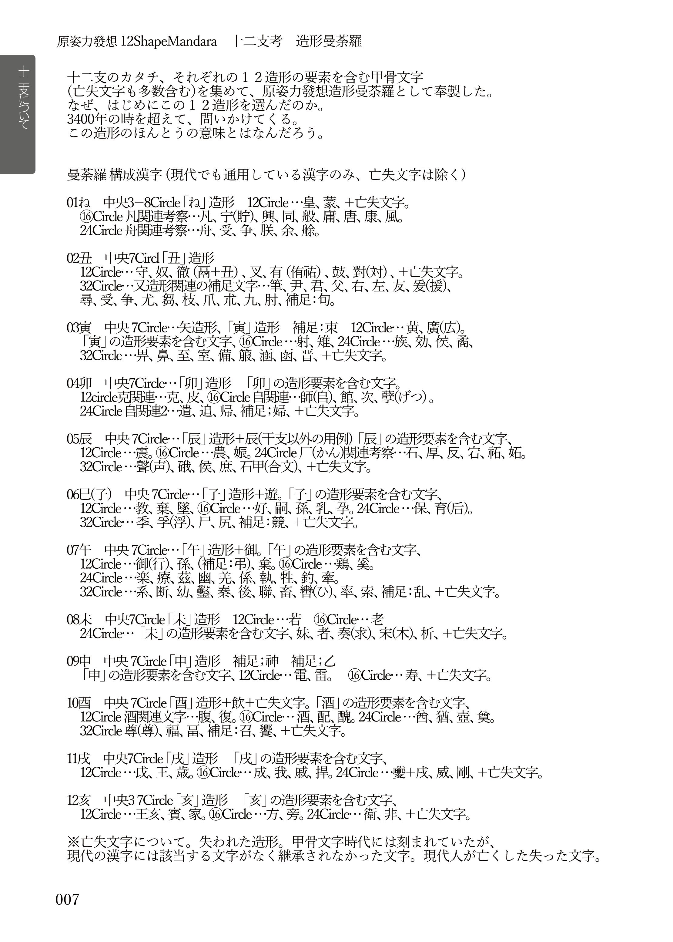 • 十二支の發想(子〜亥): 各支につき数十から九十余りの造形をCircle(循環)として紹介。文字が変遷し、増殖していく過程を視覚的に体感できます。